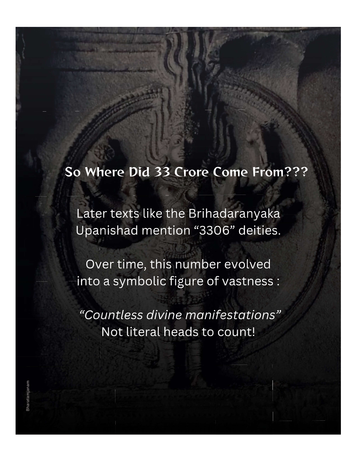 While Rigveda talks about 33 gods ,the Brhad-aranyaka Upanishad talks about “three hundred three and three thousand three” gods totaling at 3306 and it is just one of the pantheon. Later Vedic and Puranic period also tries to define the number of Gods with “33 Kotis”. While the texts of these period probably meant it as a classification between different types of Gods. Later and in some ways even Modern Hinduism adjoins it with the number “33 crore”, it is a symbolic representation of inclusive nature in Hindu Polytheism. This boom in divine authorities comes from the Puranic Period with the formation of sects around various avatars and incarnations of The Trinity: Vishnu, Shiva and Brahma and another sect of Shakti. The Gods and Goddesses of those sects are still being worshipped today.