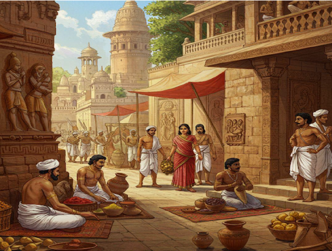 Vaishyas counted coins, spoke of distant trade routes, and calculated their profits—silk from the west, salt from the shores.